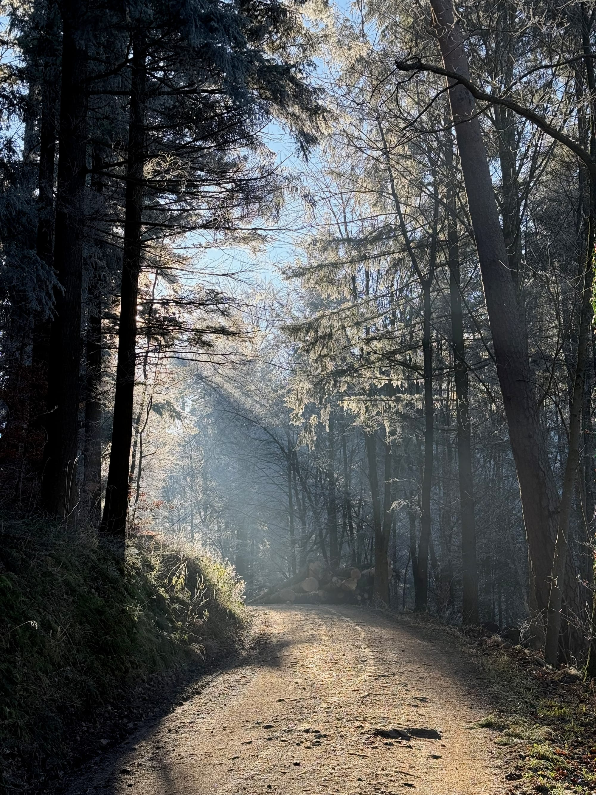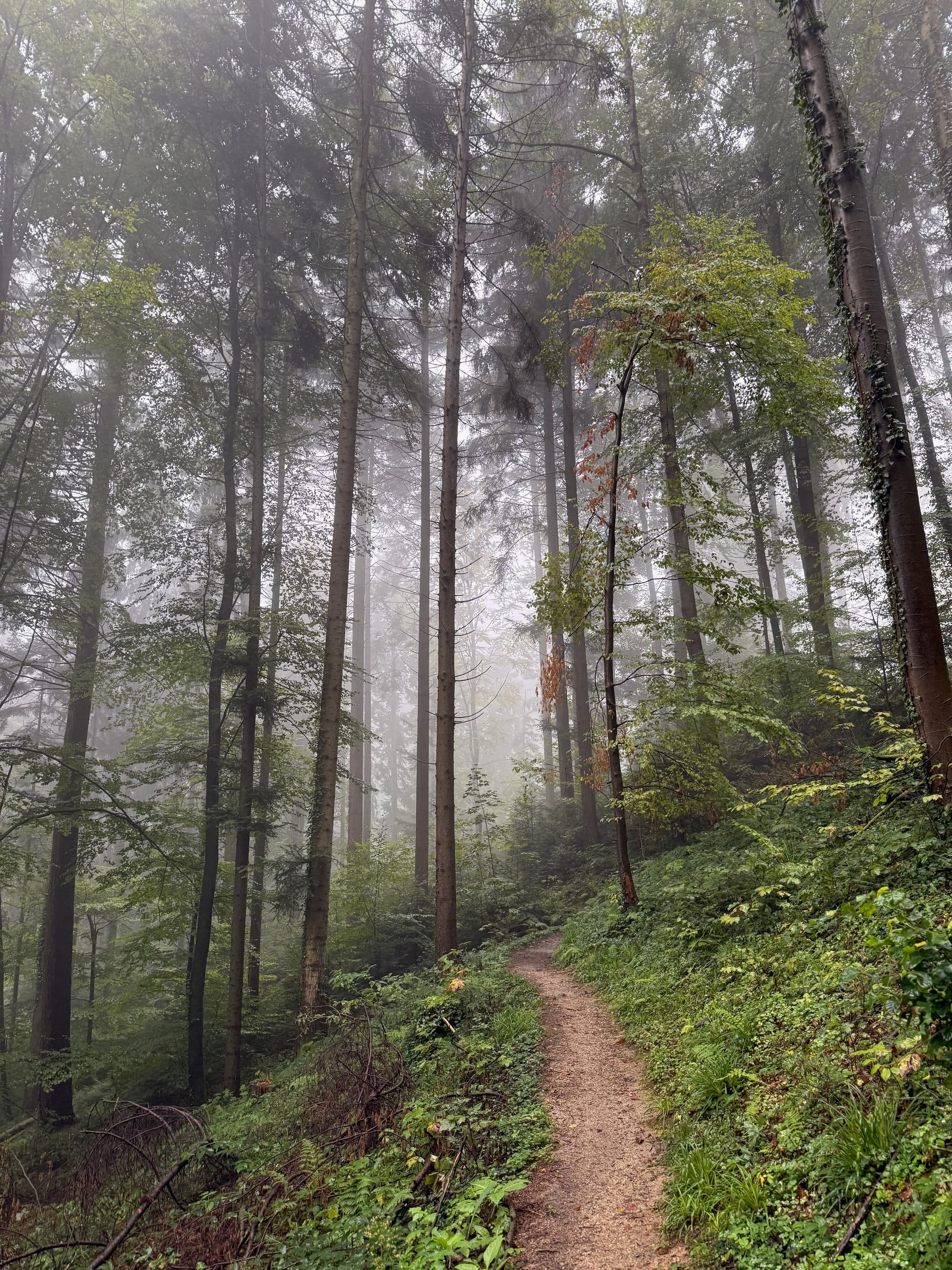 From our apartment in eastern Freiburg, it’s around 300 meters to the train crossing, then straight into the forest. I’m still grateful for this proximity—that I can leave my door and within minutes be surrounded by trees. One moment I’m on pavement, the next I’m stepping onto dirt, and the ground immediately tilts upward.